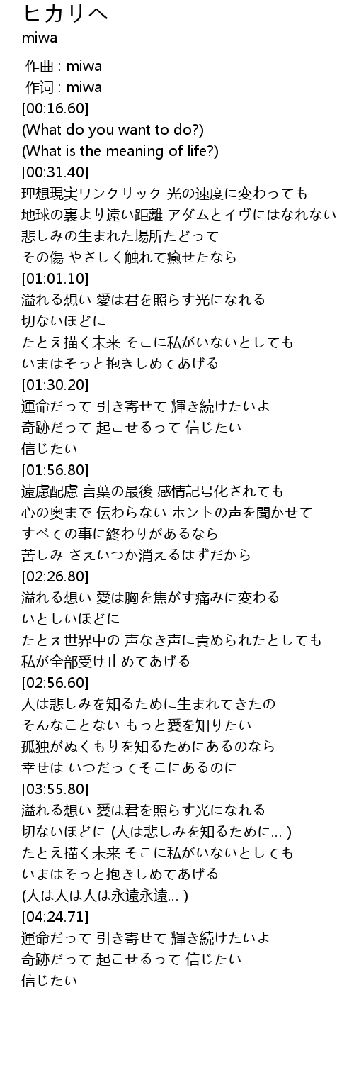 | [00:01.00] | 作词 : miwa |