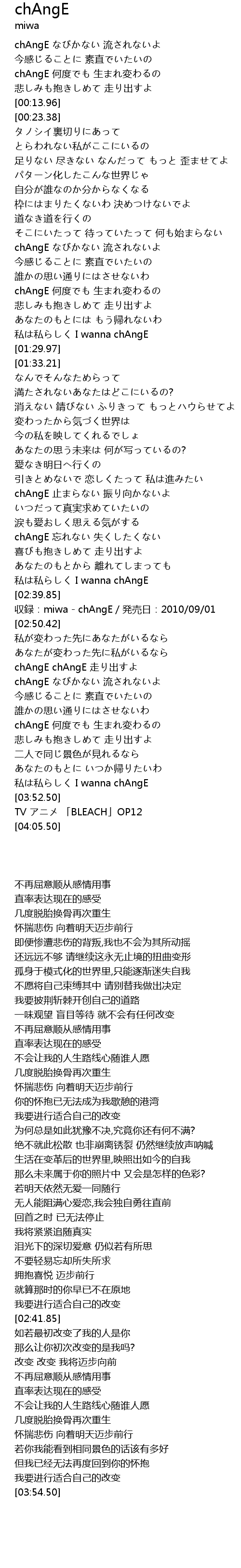 | [02:41.85] | shōu lù: miwa chAngE fā mài rì: 2010 09 01 |