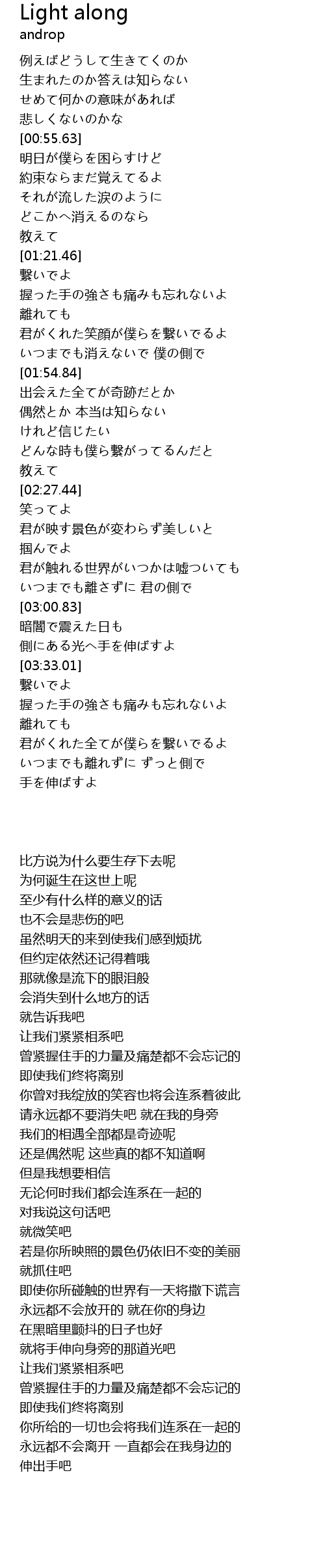 | [02:18.56] | どんな時も僕ら繋がってるんだと |
