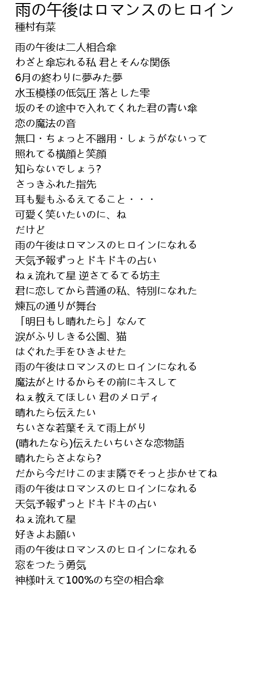 | 歌曲 | 雨の午後はロマンスのヒロイン |