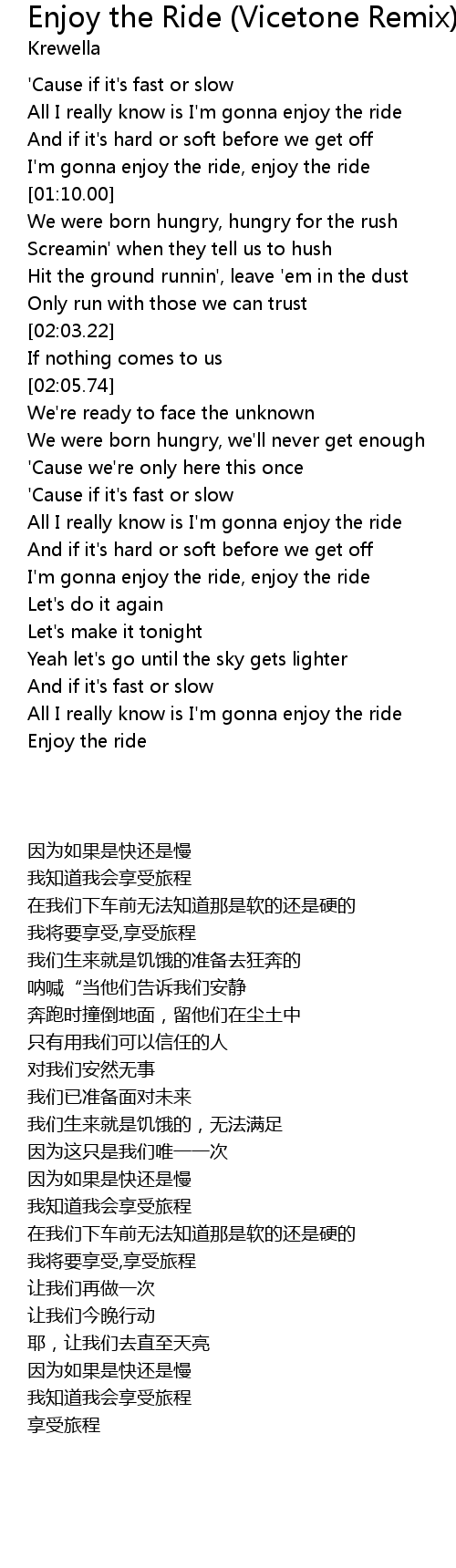 I'm gonna enjoy the ride, enjoy the ride |