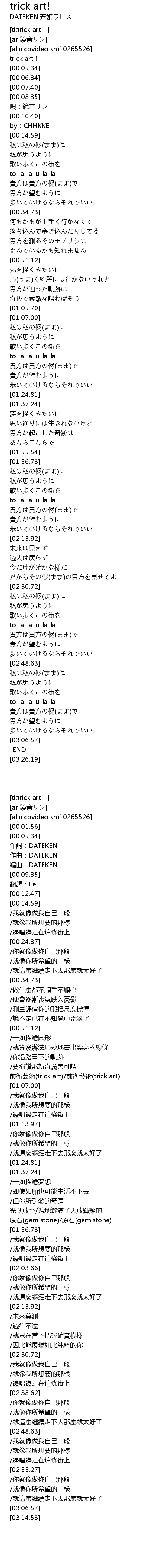 | [01:05.70] | 前衛芸術(trick art)/前衛藝術(trick art) |