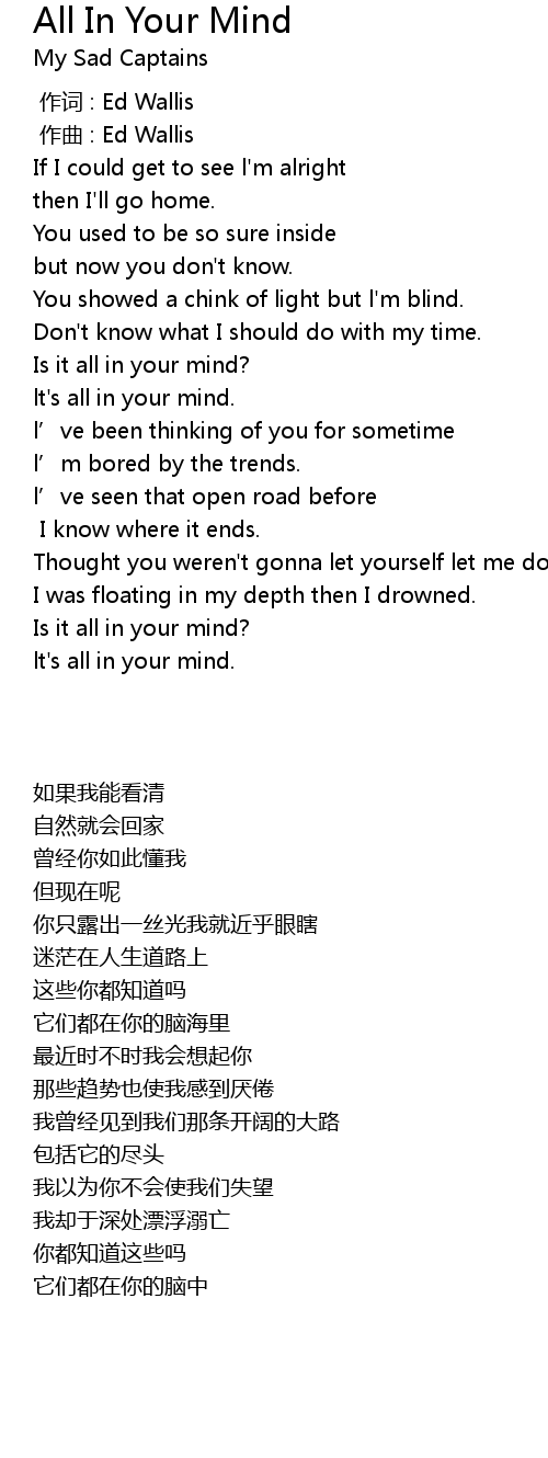 | 歌曲 | All In Your Mind |