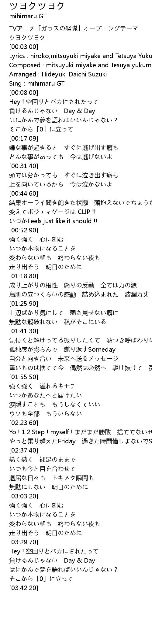 | [00:01.00] | TVアニメ「ガラスの艦隊」オープニングテーマ |
