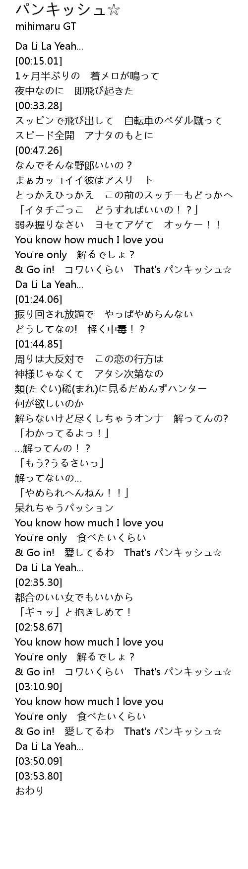 | [03:18.93] | & Go in! 愛してるわ That's パンキッシュ☆ |