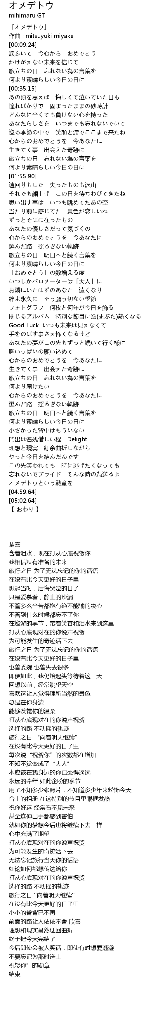 | [00:01.24] | 「オメデトウ」 |