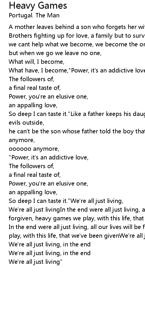 We're all just livingIn the end were all just living, all our lives will be forgiven, heavy games we play, with this life, that we've been given |