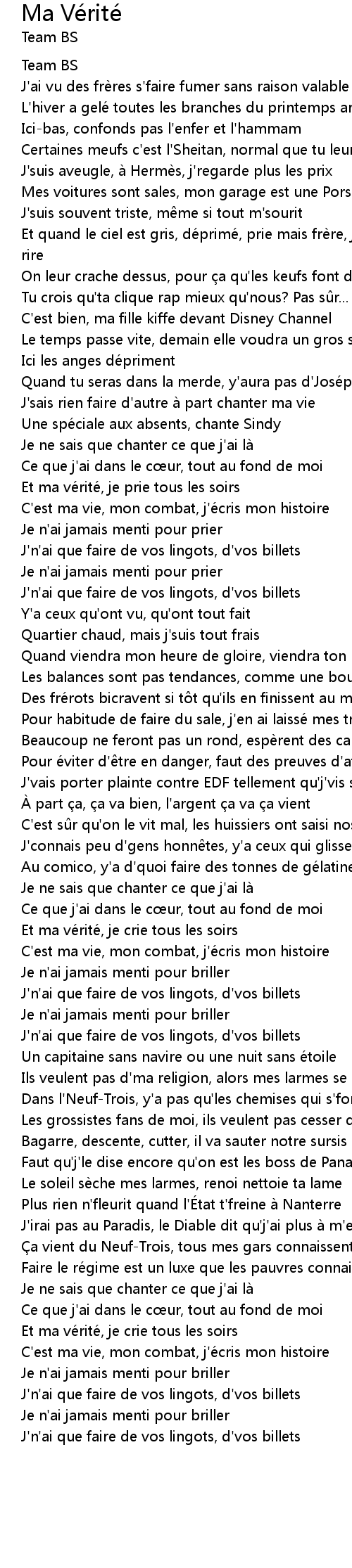 | Et ma vérité, je prie tous les soirs | |
