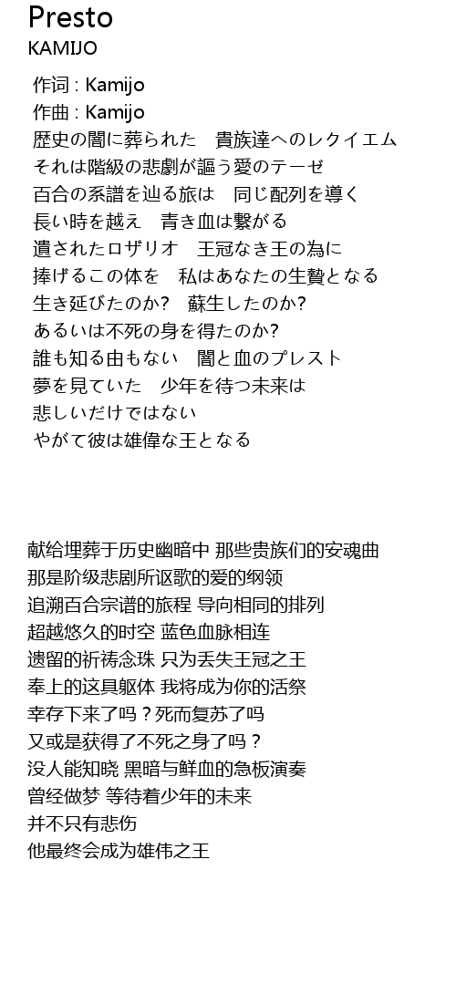 | [00:00.000] | 作词 : Kamijo |