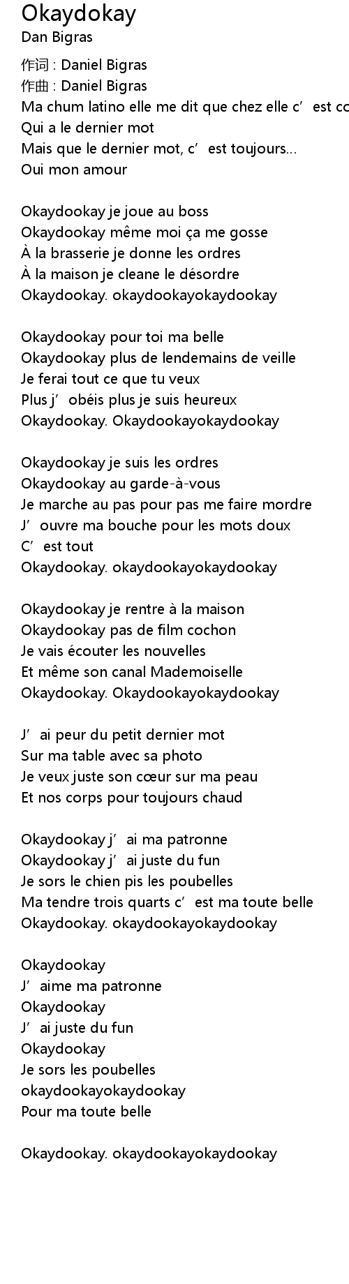 | Okaydookay pour toi ma belle | |