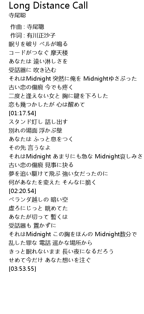 | [03:28.15] | 乱した罪な 電話 遥かな場所から |