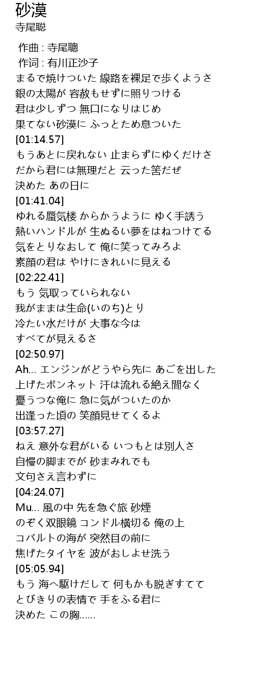 | [04:24.48] | Mu… 風の中 先を急ぐ旅 砂煙 |