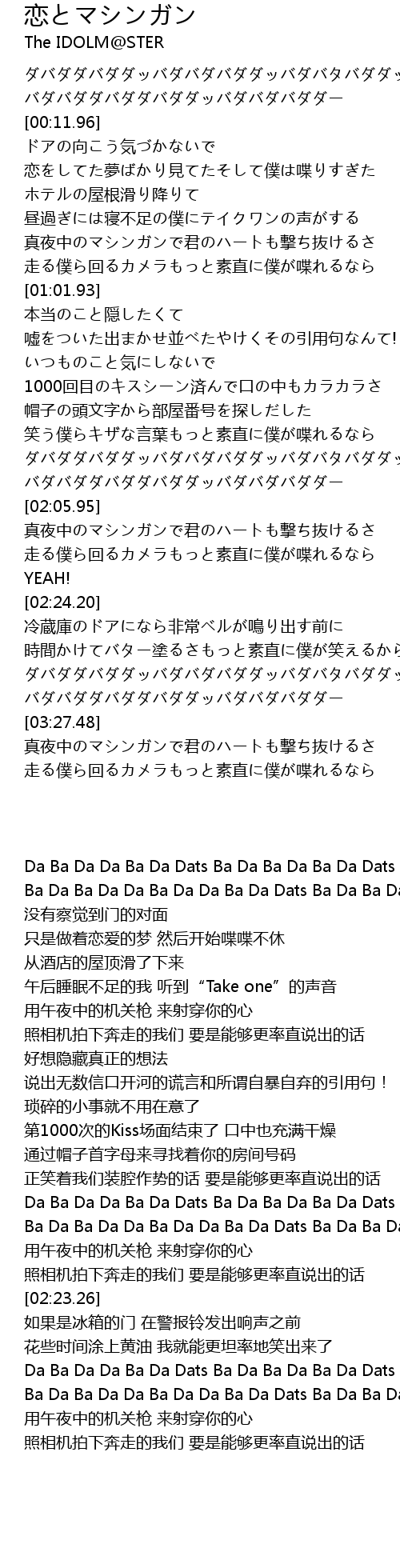 | [03:19.22] | Ba Da Ba Da Da Ba Da Da Ba Da Dats Ba Da Ba Da Ba Da Daa |
