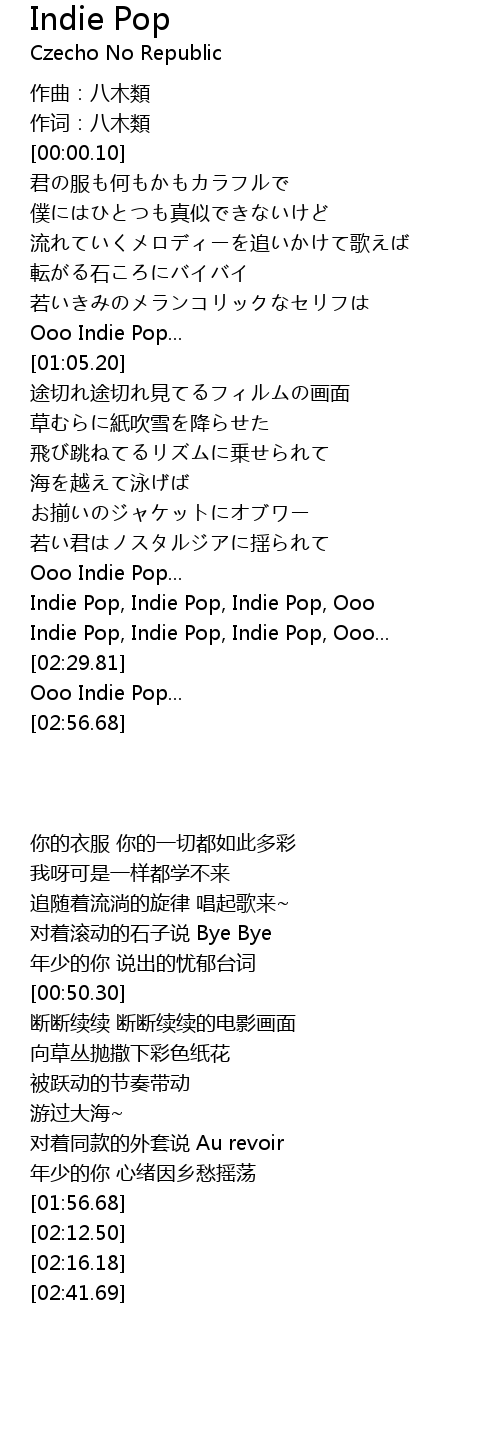 | [02:12.50] | Indie Pop, Indie Pop, Indie Pop, Ooo |