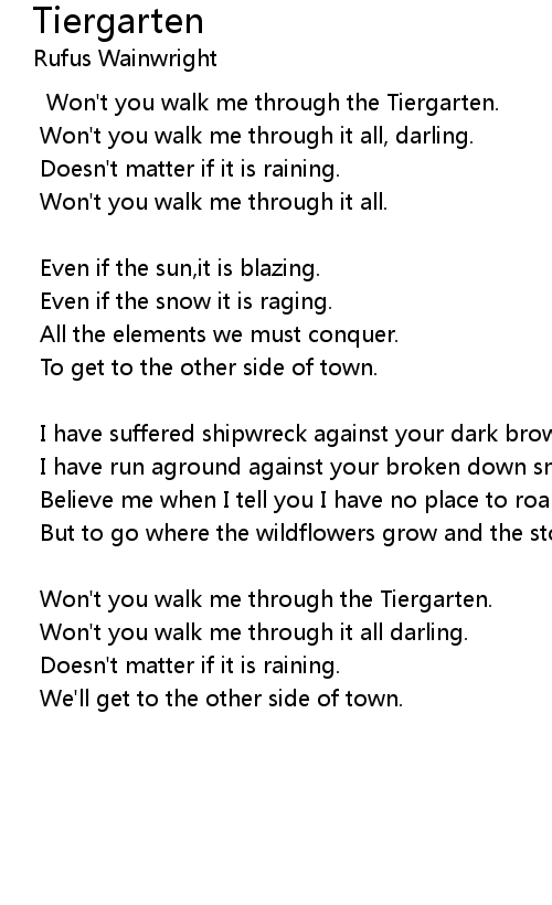 Won't you walk me through the Tiergarten. |