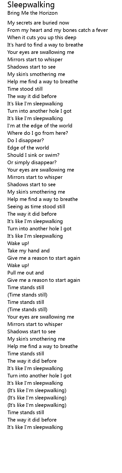 (It's like I'm sleepwalking) |
