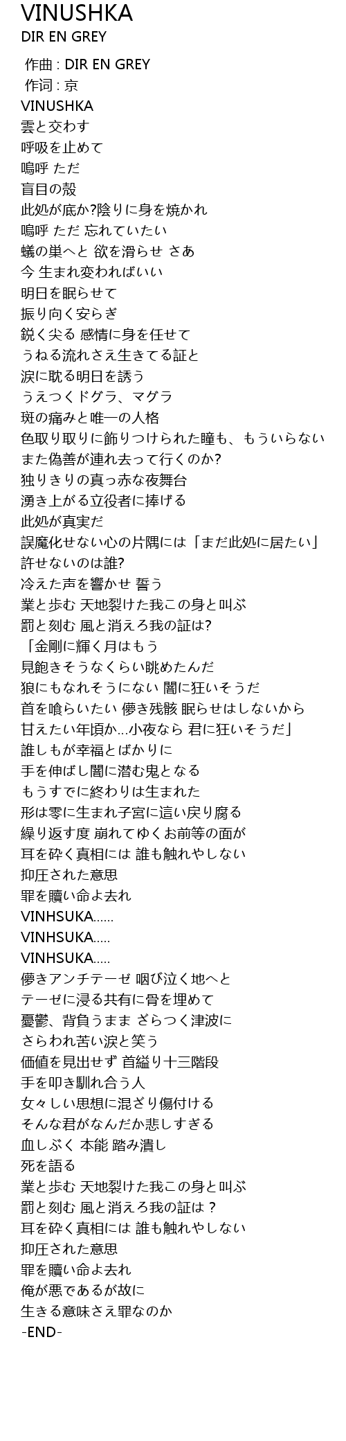 | [00:00.00] | 作曲 : DIR EN GREY |