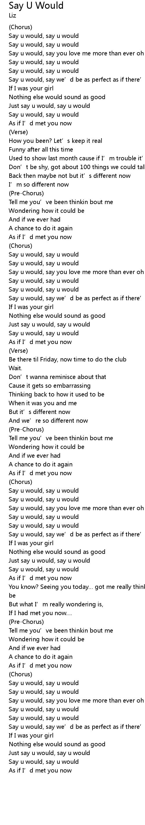 | Say u would, say you love me more than ever oh | |