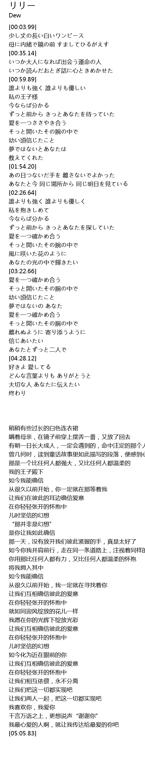 | [00:12.19] | 稍稍有些过长的白色连衣裙 |