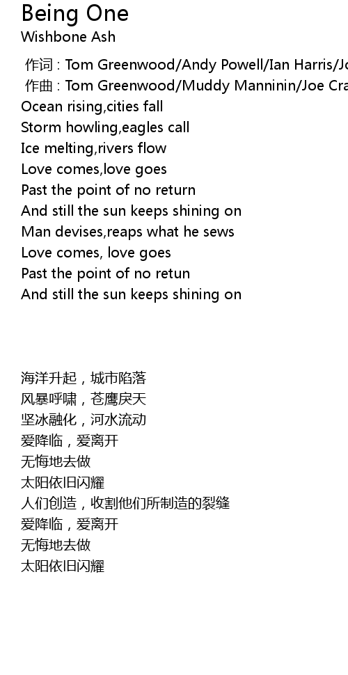 | [00:00.000] | zuò cí : Tom Greenwood Andy Powell Ian Harris Joe Crabtree |