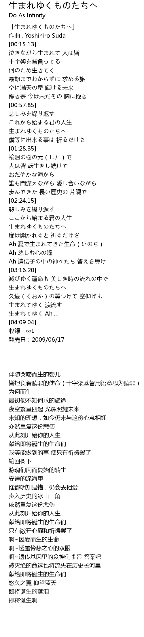 | [00:01.13] | 「生まれゆくものたちへ」 |