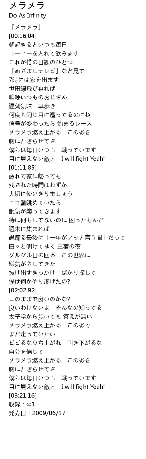 | [00:01.04] | 「メラメラ」 |