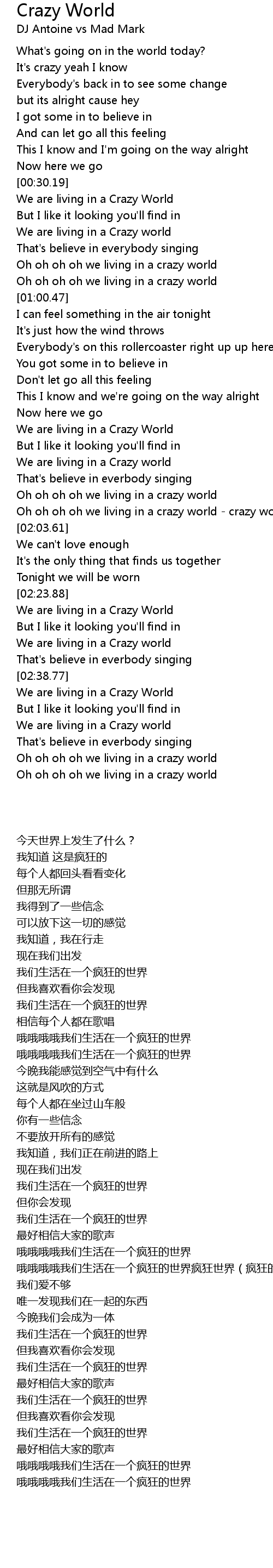Oh oh oh oh we living in a crazy world - crazy world (crazy world) |