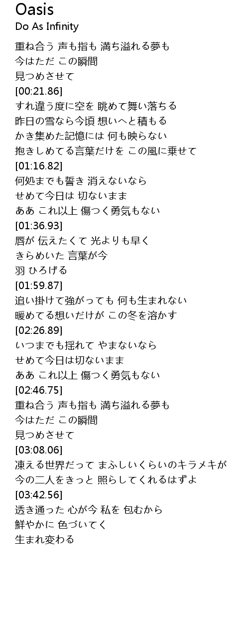| [02:18.43] | 暖めてる想いだけが この冬を溶かす |