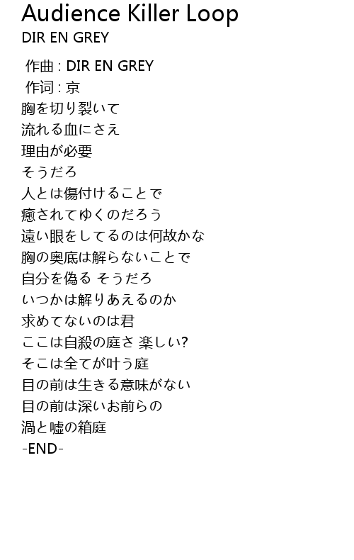 | [00:00.00] | zuò qǔ : DIR EN GREY |