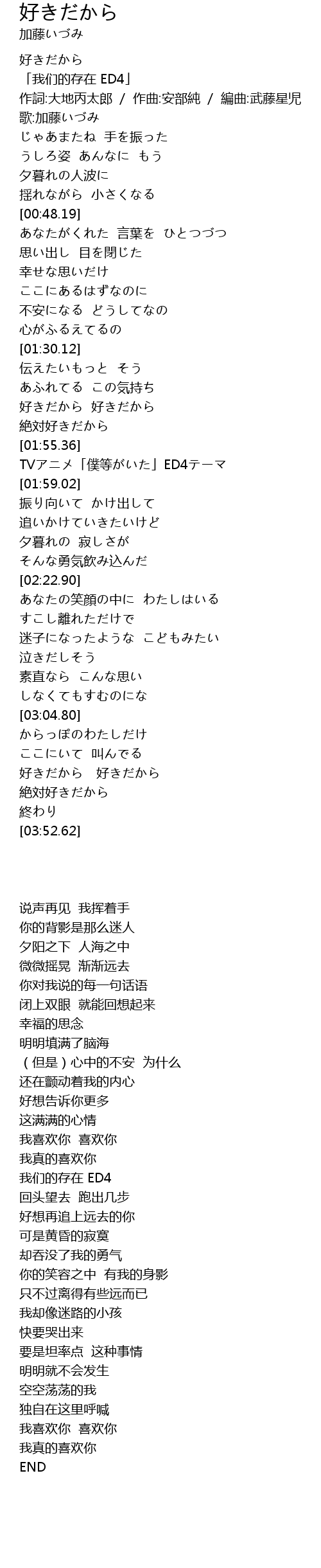 | [01:56.36] | TVアニメ「僕等がいた」ED4テーマ |