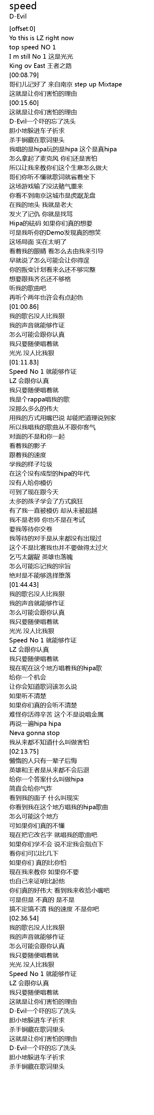 | [02:35.61] | 搞不定搞不清 我的速度 不是你吧 |