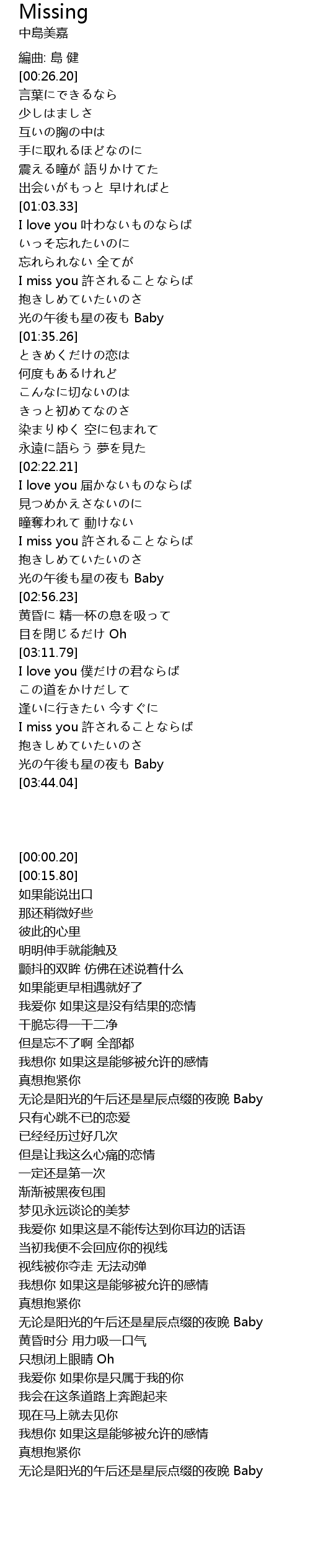 | [03:33.68] | 光の午後も星の夜も Baby |