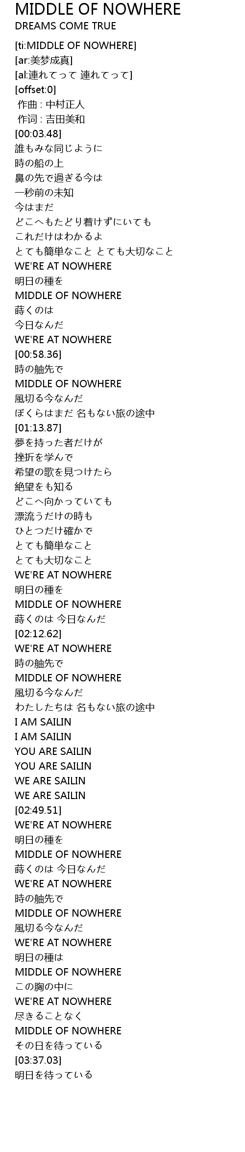 | [03:18.77] | MIDDLE OF NOWHERE |