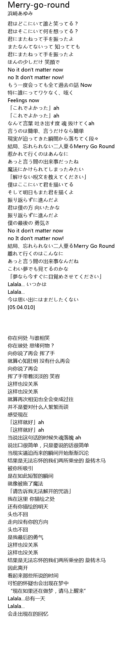 | [03:59.470] | 結局、忘れられない二人乗るMerry Go Round |