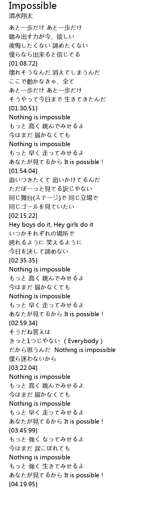 | [01:41.39] | Nothing is impossible |