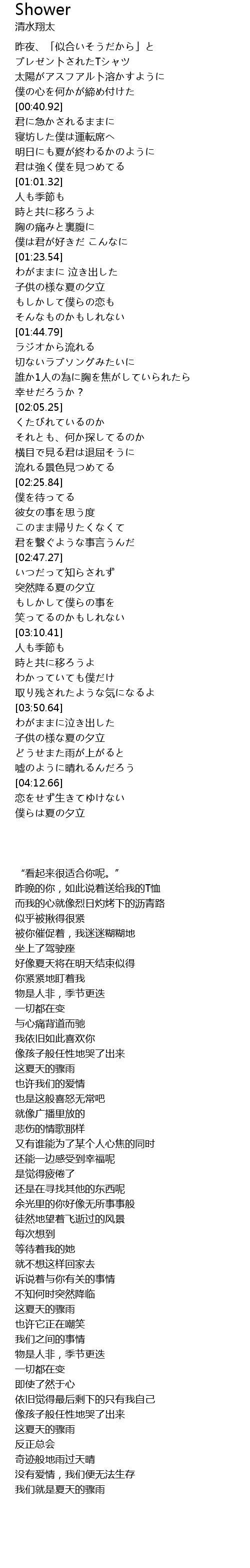 | [03:57.84] | 子供の様な夏の夕立 |