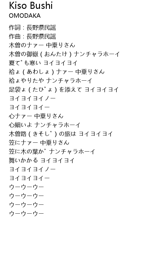| 歌曲 | Kiso Bushi |