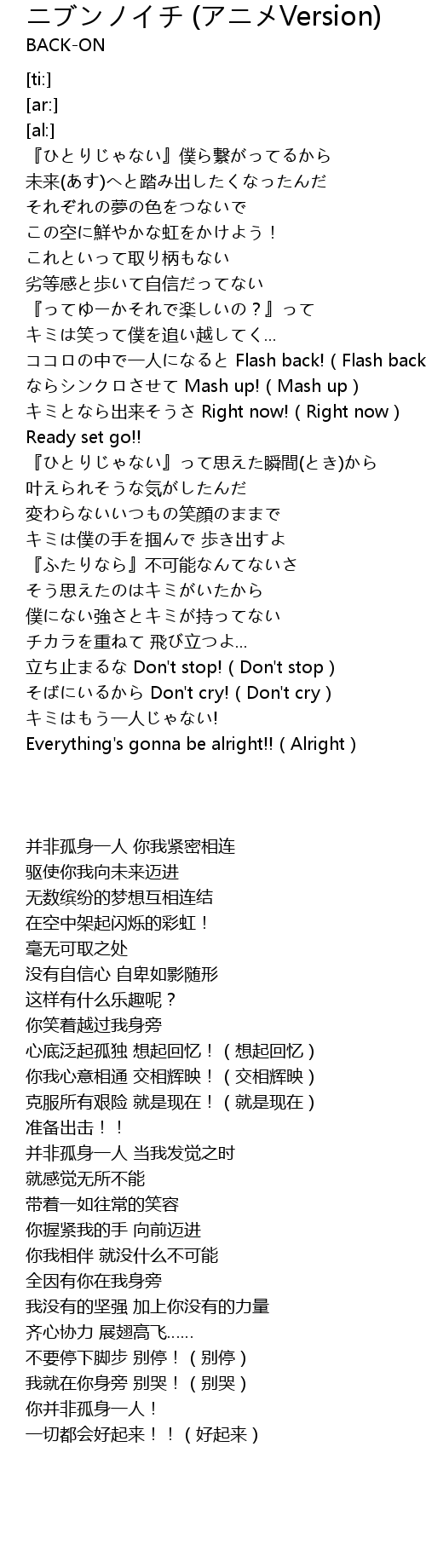 | [01:26.49] | Everything's gonna be alright!!(Alright) |