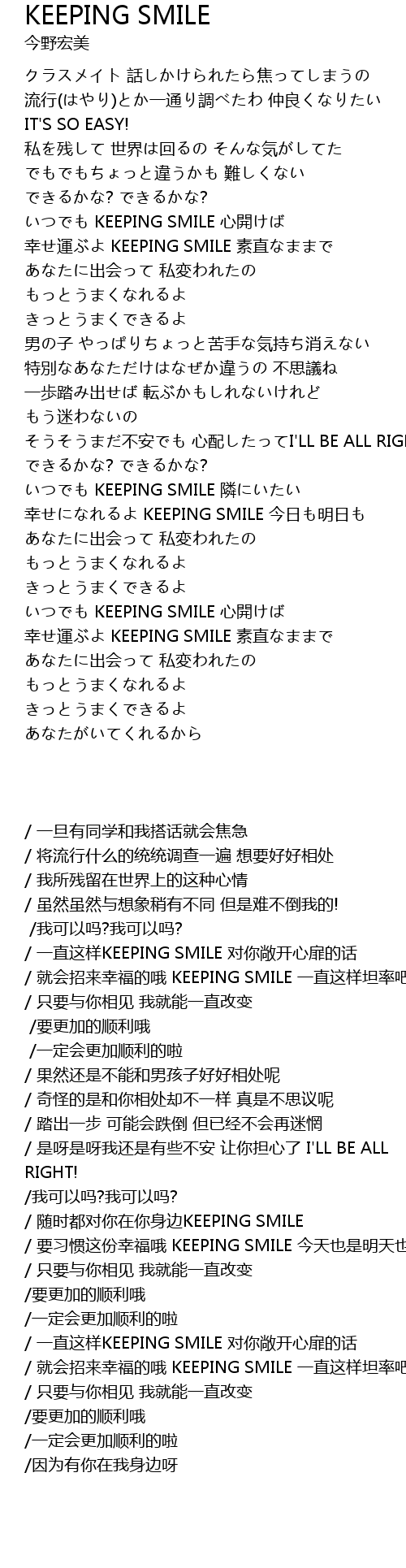 | [00:59.100] | / 就会招来幸福的哦 KEEPING SMILE 一直这样坦率吧 |