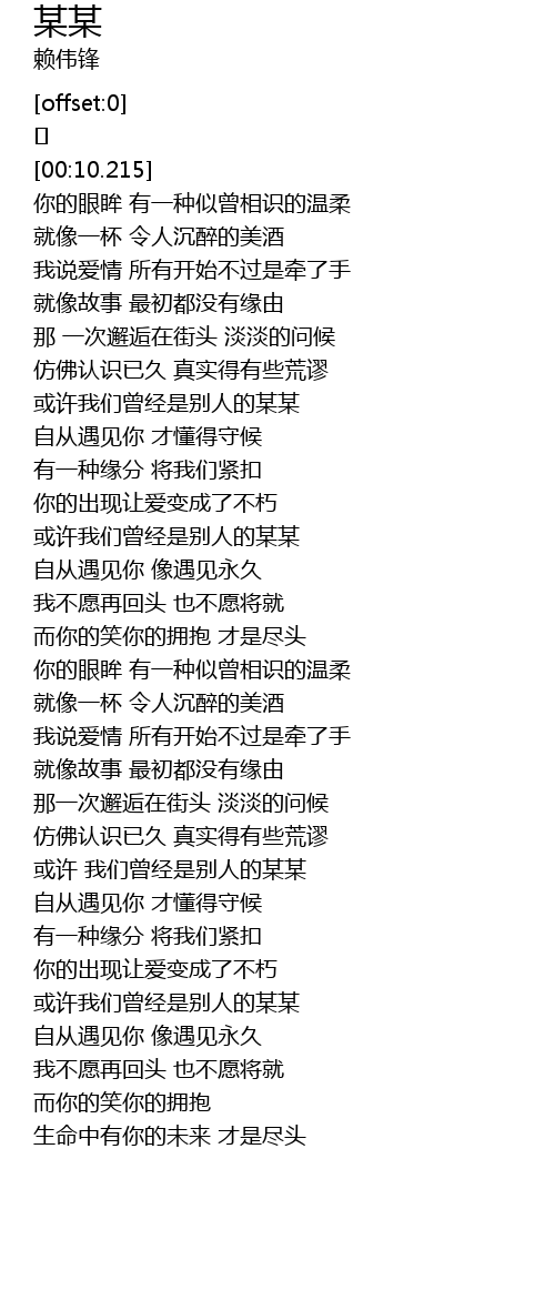 | [01:29.324] | 自从遇见你 像遇见永久 |