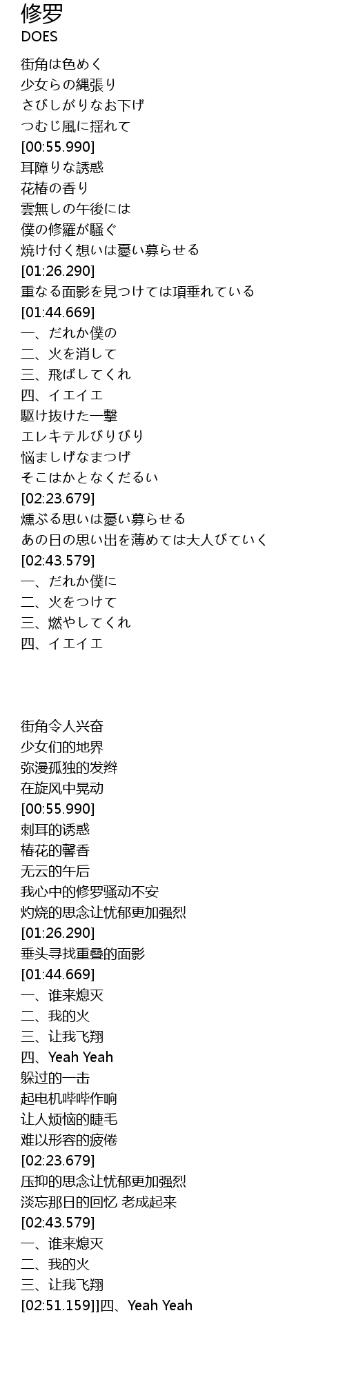 | [01:21.029] | 我心中的修罗骚动不安 |