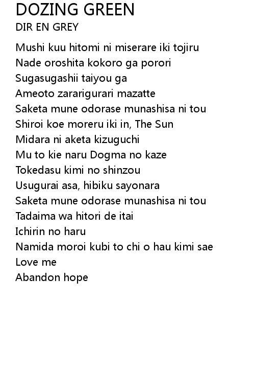| 歌曲 | DOZING GREEN |