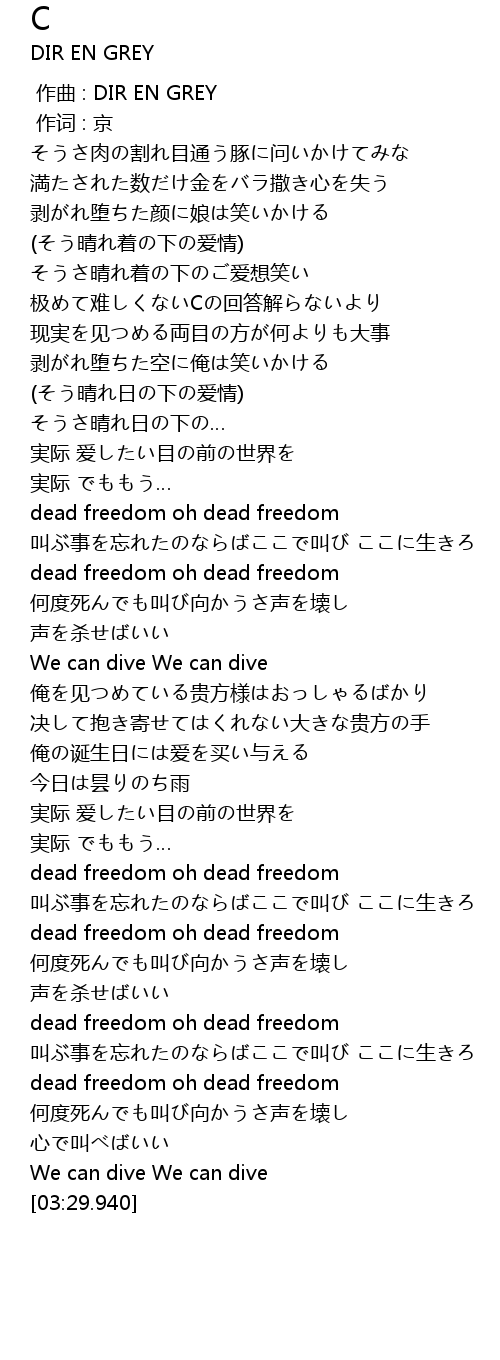 | [00:00.00] | 作曲 : DIR EN GREY |