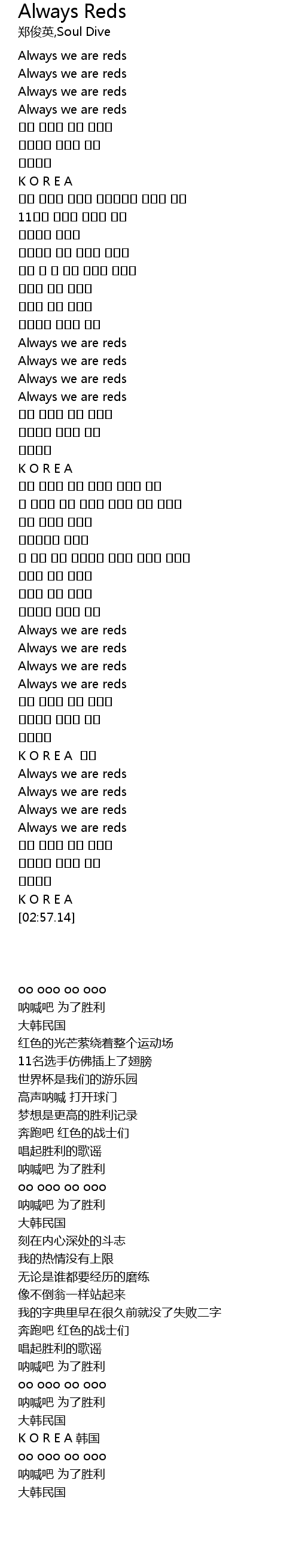 | [00:03.22] | Always we are reds |