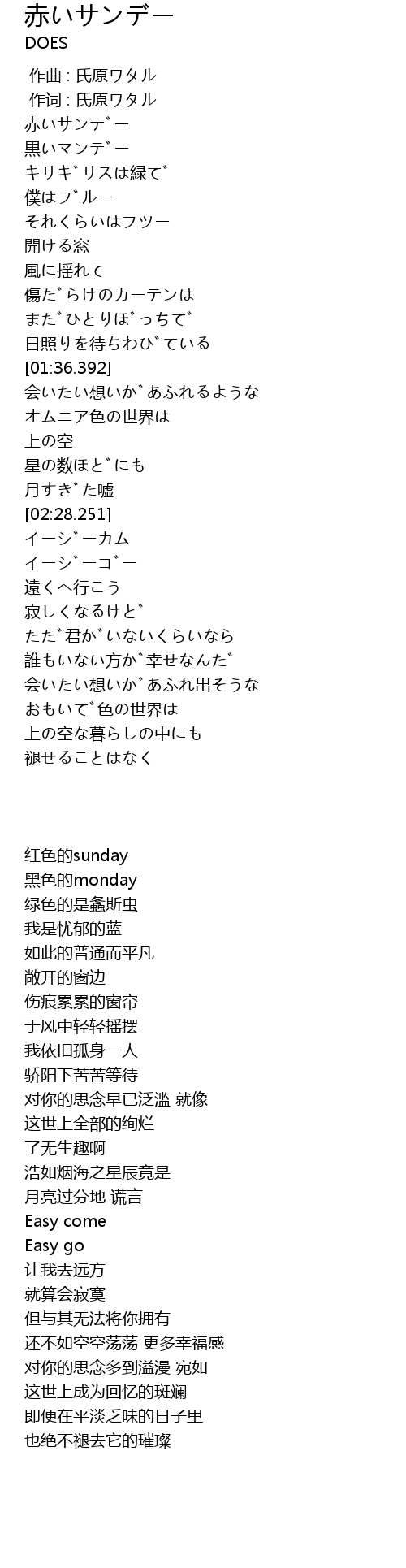 作词 : 氏原ワタル |