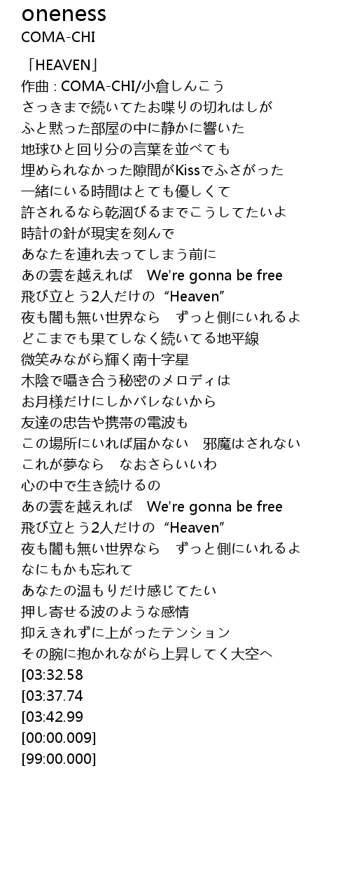 | [04:00.04][03:37.74] | 飛び立とう2人だけの“Heaven” |