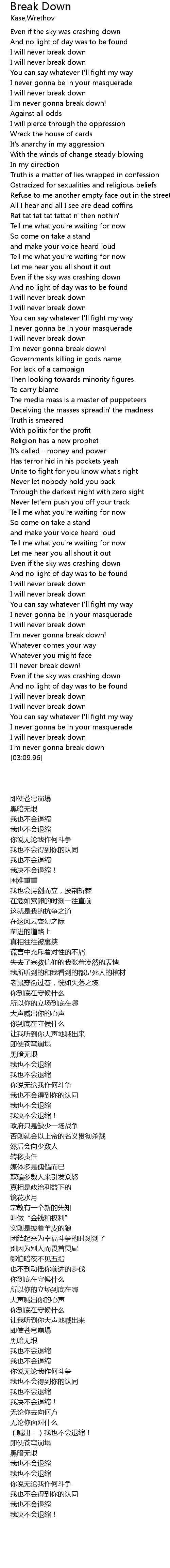I will never break down |