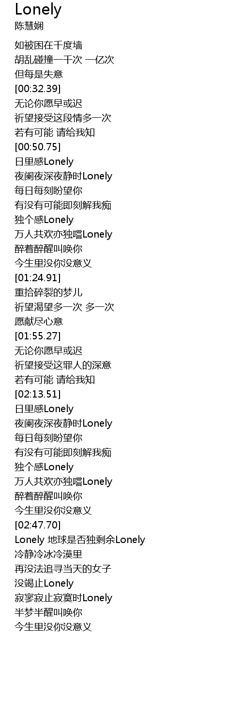 | [03:31.71] | 寂寥寂止寂寞时Lonely |