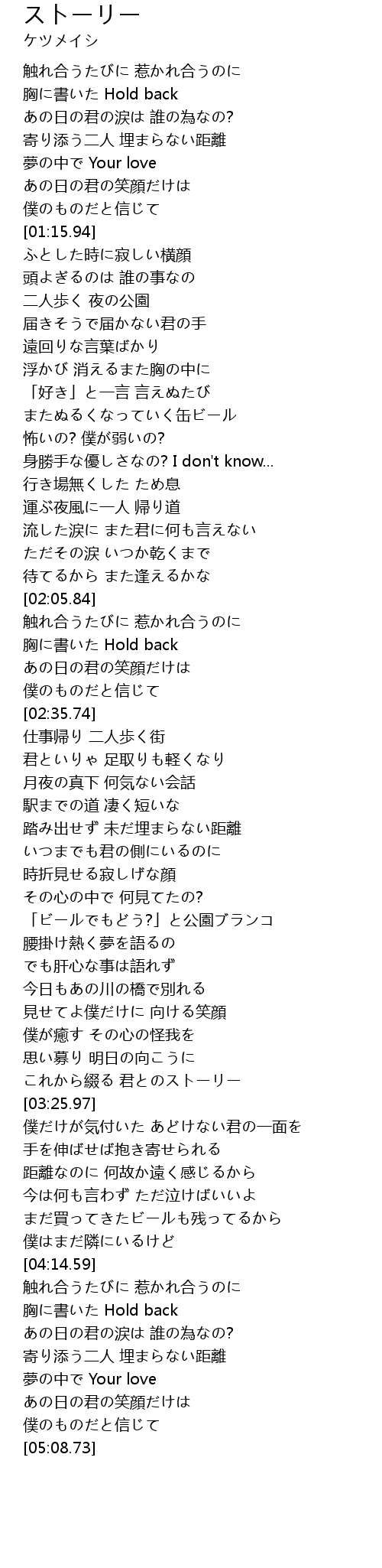 | [04:22.67] | 胸に書いた Hold back |