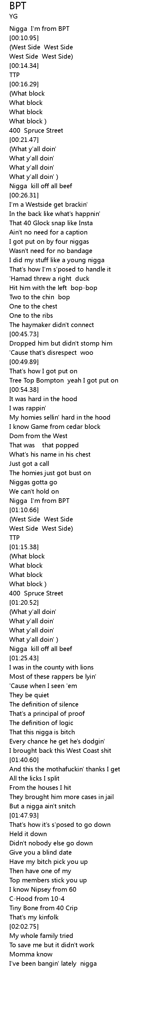 Nigga I'm from BPT |